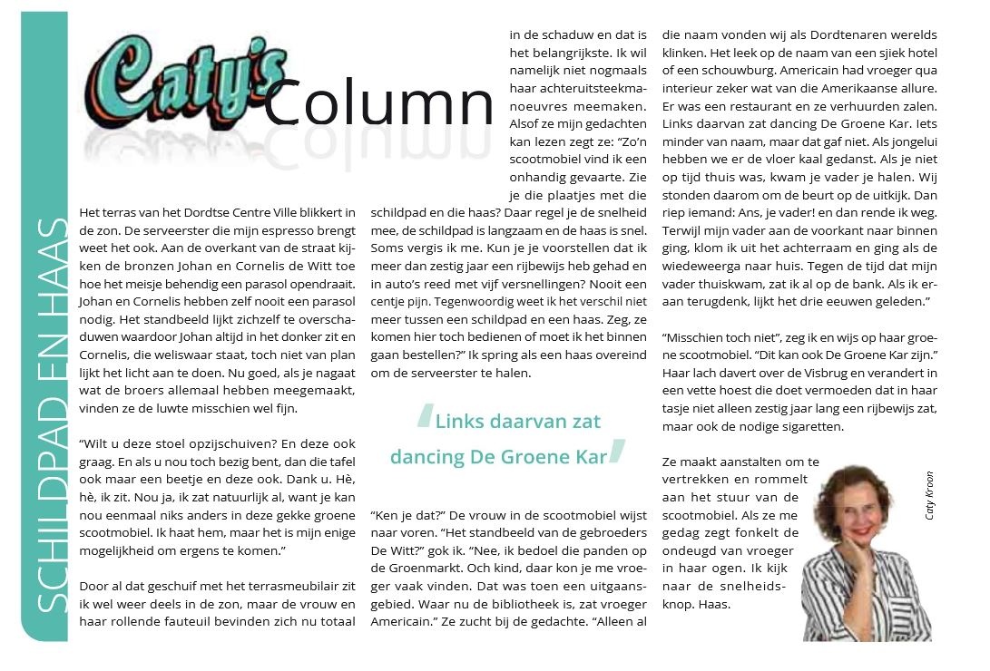 Caty's Column staat vanaf september 2025 in De Plusser, de krant voor de 50-plusser. De special De Plusser wordt uitgegeven door Dordt Centraal, verschijnt iedere twee maanden en richt zich op mensen van zo ongeveer 50 jaar en ouder. In tegenstelling tot weekkrant Dordt Centraal, is De Plusser geen huis-aan-huiskrant, maar kun je hem meenemen bij meer dan tachtig afhaalpunten in de Drechtsteden. Klik hier voor een afhaalpunt in je buurt.